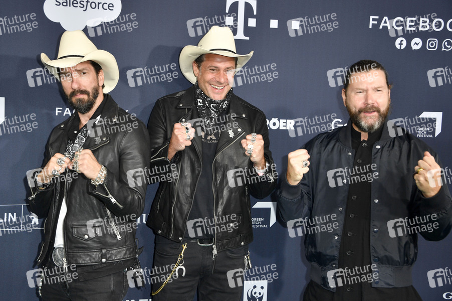 Alec Völkel und Sascha Vollmer von The BossHoss mit Rea Garvey bei den Green Awards 2020 im Kraftwerk Berlin. Berlin, 18.09.2020