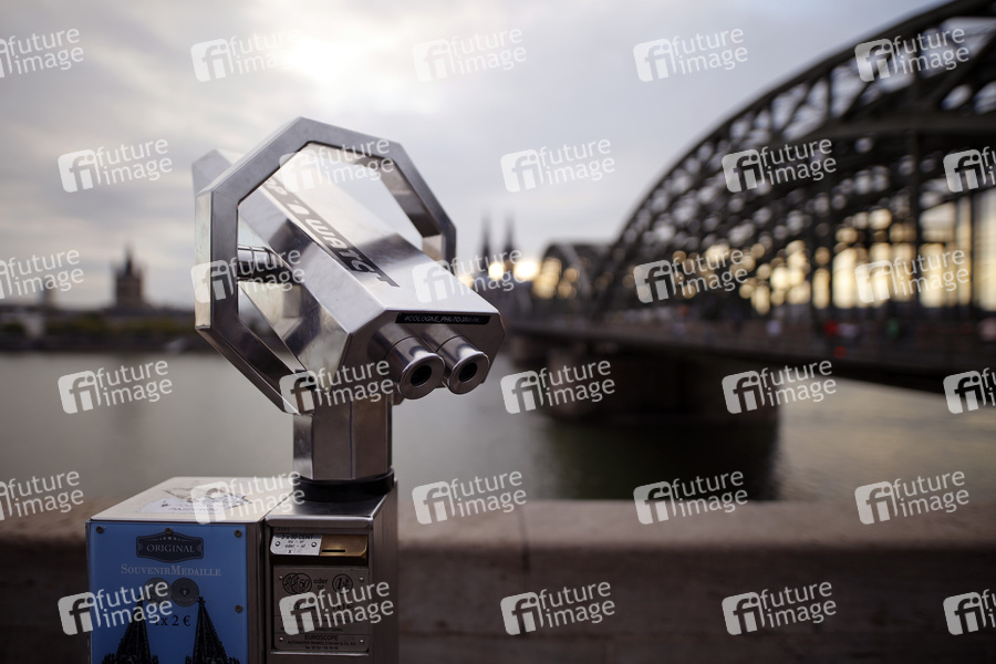 Ausblick, Weitsicht, Aussichten, Weitblick, Tourismus, Sightseeing, Überblick, Fernsicht, Fernglas, Münzfernglas, Münzeinwurf, Aussichtspunkt, Schauen, Beobachten, Beobachtung, Fernrohr, Aussichtsfernrohr, Kölner Skyline, Symbolbild, Symbolfoto
