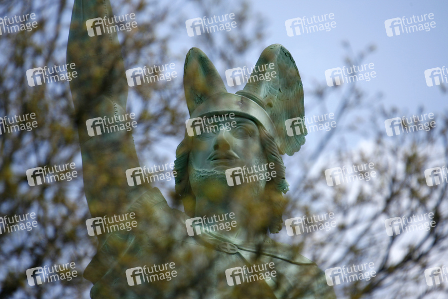 soll an den Cheruskerfürsten Arminius (Lateinisch, in deutsch: Hermann) erinnern, Gesanthöhe 53.46 m, Sandsteinunterbau 26.89m, Figur 26.57 m, besteht aus einer Eisenrohrkonstruktion mit Oberfläche aus Kupferplatten, Erbauer Ernst von Bandel, Baubeginn 1838, nach der Revolution von 1848 ruhte der Bau bis 1863, festliche Einweihung 1875