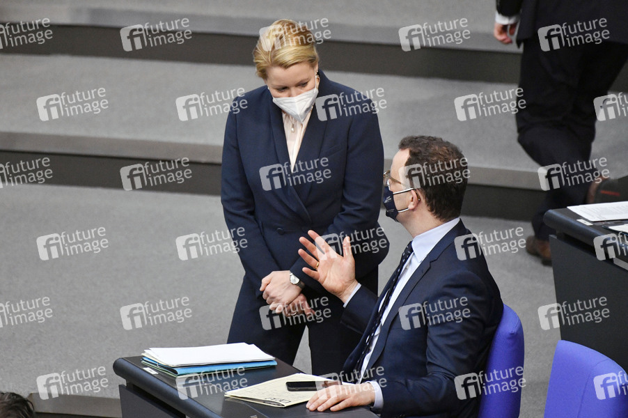 Franziska Giffey und Jens Spahn in der 227. Sitzung des Deutschen Bundestages im Reichstagsgebäude. Berlin, 06.05.2021