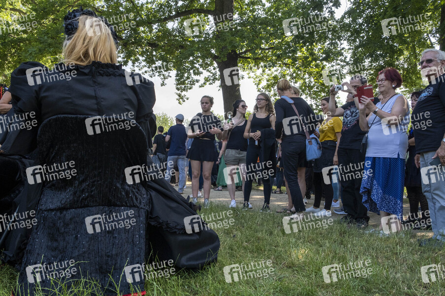 Festivalbesucher beim Viktorianischen Picknick im Clara-Zetkin-Park beim 28. Wave-Gotik-Treffen. Leipzig, 07.06.2019