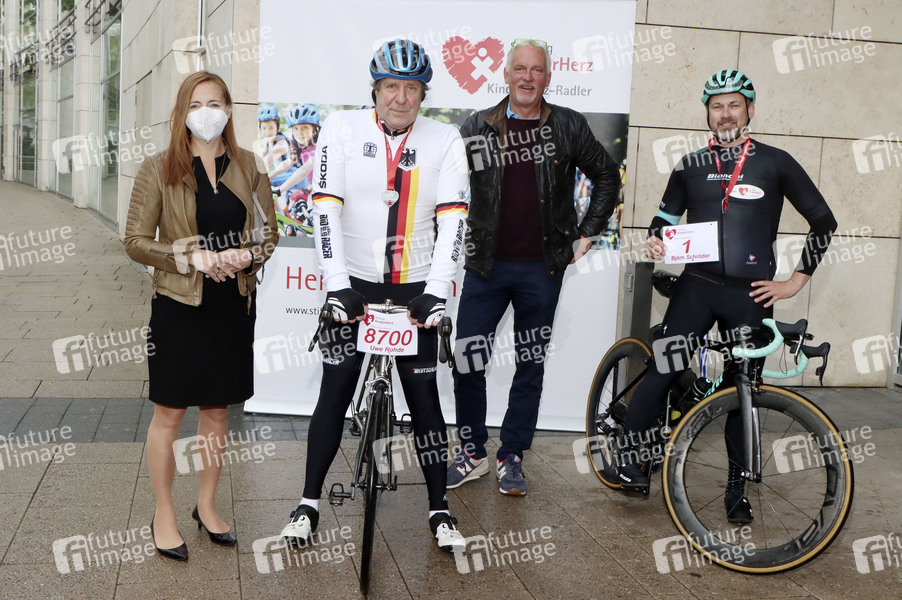 Ludmila Brendel, Uwe Rohde, Bernd Gröne und Björn Schröder beim Start der HerzRadtour zugunsten der Stiftung KinderHerz vor dem Alstertal-Einkaufszentrum. Hamburg, 26.05.2021