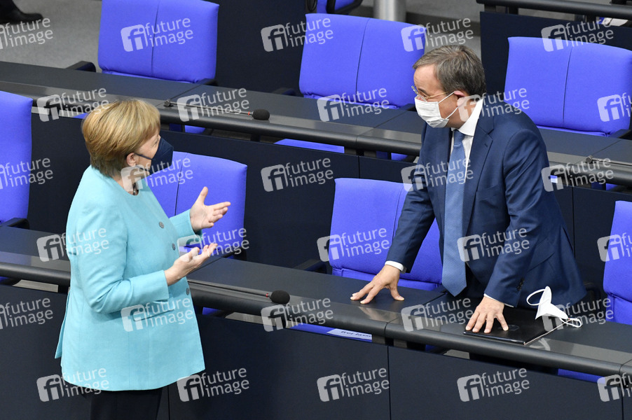 Angela Merkel und Armin Laschet in der 236. Sitzung des Deutschen Bundestages im Reichstagsgebäude. Berlin, 24.06.2021