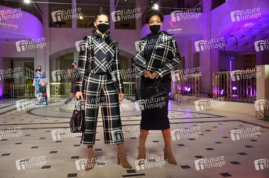 Models bei der Anja Gockel Fashion & Art Show 'Embraceland' im Rahmen der Berlin Fashion Week Autumn/Winter 2021/22 im Hotel Adlon. Berlin, 19.01.2021