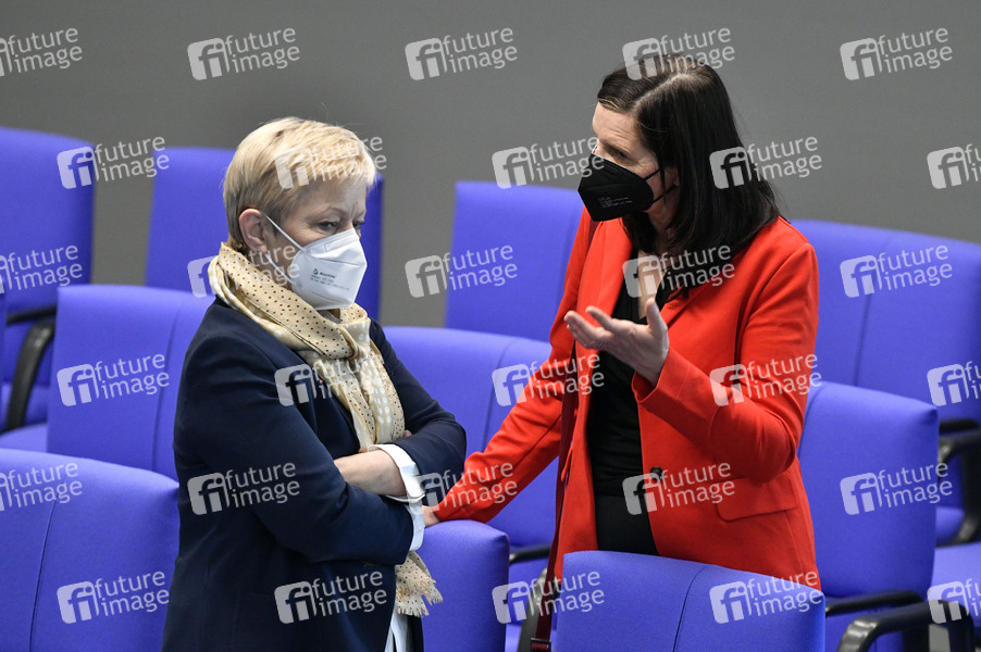 Renate Künast und Katrin Göring-Eckardt in der 227. Sitzung des Deutschen Bundestages im Reichstagsgebäude. Berlin, 06.05.2021