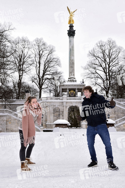 Stephanie Liebl und Julian Wittmann beim Winterspaziergang in den Parkanlagen beim Friedensengel und an der Isar. München, 27.01.2021