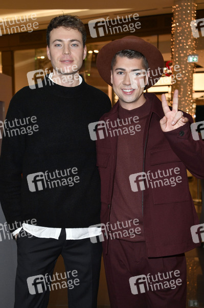 Tim Peters und Maximilian Seitz beim Promi Charity Event zugunsten des strassenfeger e. V. in der Mall of Berlin. Berlin, 06.12.2022