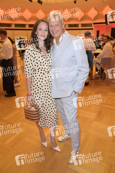 Uwe Fahrenkrog-Petersen mit Partnerin Christin Dechant bei der Verleihung des Fred Jay Preises 2024 im bcc Berlin Congress Center. Berlin, 14.05.2024