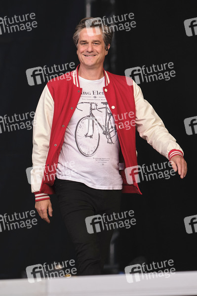 Oliver Perau von Terry Hoax live beim Autokultur-Konzert auf dem Schützenplatz. Die Besucher verfolgen unter Berücksichtigung klarer Hygiene-Vorschriften während der Corona-Krise den Auftritt aus dem Auto. Hannover, 10.05.2020