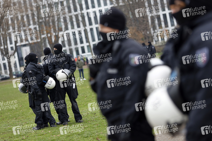 Polizeiaufgebot anlässlich der Querdenken-Demo im Rheinpark Golzheim. Düsseldorf, 06.12.2020