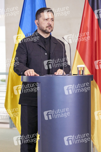 Wolodymyr Selenskyj beim Empfang des Präsidenten der Ukraine mit militärischen Ehren und zu einem gemeinsamen Gespräch mit dem Bundeskanzler mit anschließendem Pressestatement im Bundeskanzleramt. Berlin, 28.05.2025