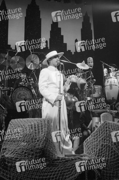August Darnell von Kid Creole and the Coconuts live im Hammersmith Odeon. London, 19.09.1983