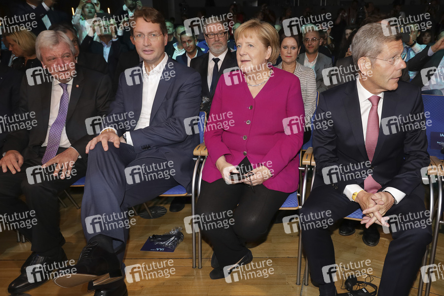 Politiker, Ministerpräsident von Hessen, Vorstandsvorsitzender von Daimler, Politikerin, Bundeskanzlerin der Bundesrepublik Deutschland, VDA-Präsident, Auto, Kfz, Pkw, Fahrzeug, Messe, Fair, Ausstellung, Automobilfachmesse, Frankfurt Motor Show, IAA Frankfurt, Technik, Internationale Automobil-Ausstellung, Verband der Automobilindustrie, VDA