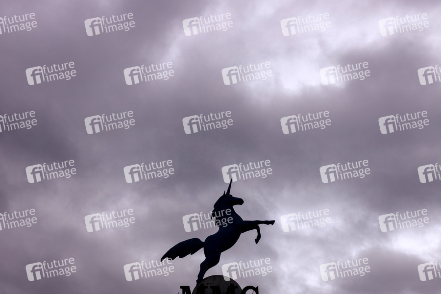 Die Verlängerung des Teil-Lockdowns bis zum 10. Januar ist eine große Belastung für alle Kulturschaffenden und den gesamten Kultursektor. Im Bild dunkle Wolken über dem Einhorn über dem Eingang der TV-Studios von MMC in Ossendorf. (Themenbild, Symbolbild) Köln, 07.12.2020