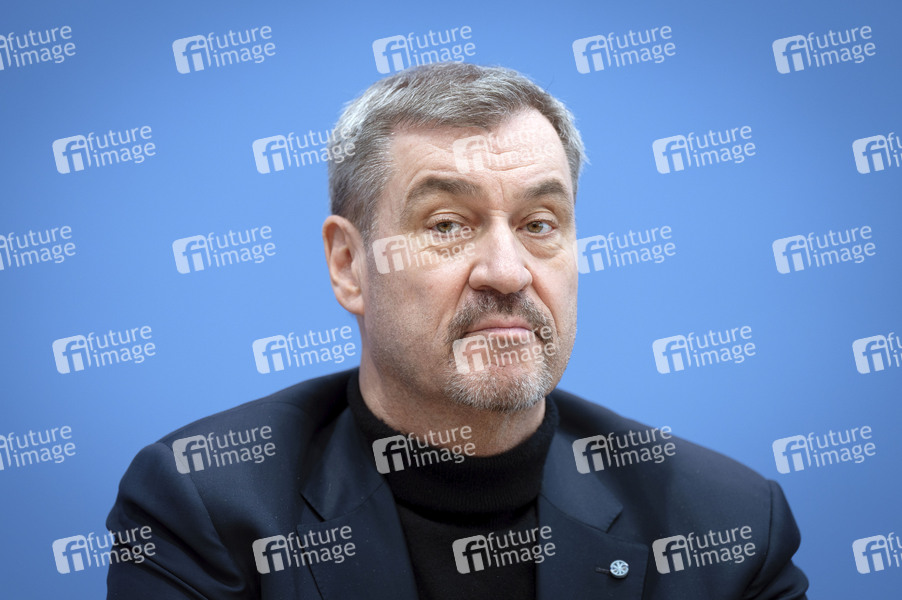 Markus Söder bei der Bundespressekonferenz '3 Löwen Allianz' im Haus der Bundespressekonferenz. Berlin, 30.01.2026