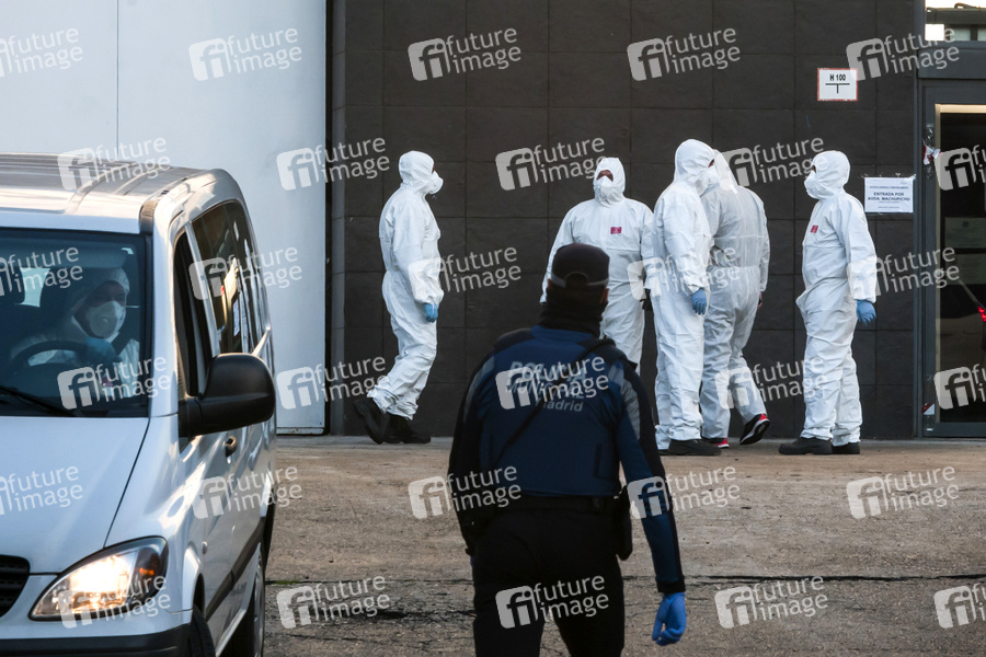 Tag 9 nachdem die spanische Regierung den Ausnahmezustand wegen des Coronavirus COVID-19 erklärt hat. Die Bevölkerung steht 15 Tage zu Hause unter Quarantäne. Die spanische Polizei und Armee überprüfen Menschen, die durch die Straßen gehen. Erlaubt sind Gänge in Krankenhaus, in Supermärkte, Kioske und Apotheken, sowie das Ausführen von Haustieren und der Weg zur Arbeit. Der Palacio de Hielo wird wegen Überlastungen der Bestattungsunternehmen als Leichenhalle eingerichtet. Madrid, 23.03.2020