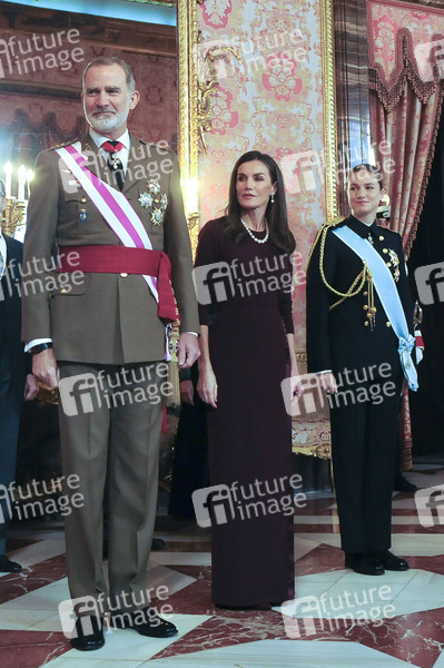 Felipe von Spanien, Letizia von Spanien und Leonor von Spanien bei der traditionallen Militärzeremonie 'Pascua Militar' im Palacio Real. Madrid, 06.01.2025