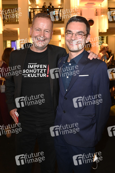 Klaus Lederer mit Ehemann Oskar Krüger bei der Weltpremiere der ARISE Grand Show 2021 im Friedrichstadt-Palast. Berlin, 22.09.2021