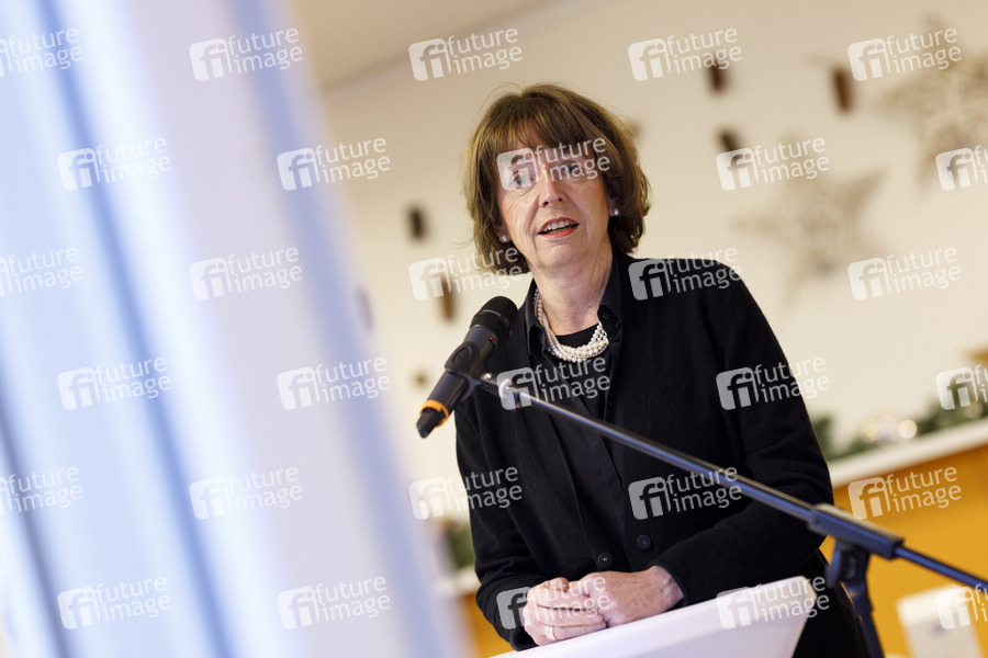 Henriette Reker beim Fototermin zum Impfbeginn in Köln. Zum Impfstart in Köln werden Senioren und Mitarbeiter der Kölner Sozialbetriebe mit dem Corona-Impfstoff von Biontech Pfizer geimpft. Als erste Kölnerin erhielt die 92-jährige Gertrud Vogel, eine Pflegeheimbewohnerin des Seniorenzentrum Riehl das Vakzin. Köln, 27.12.2020