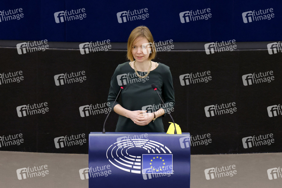 Anna Cavazzini im Plenarsaal des Europäischen Parlaments. Straßburg, 10.03.2022