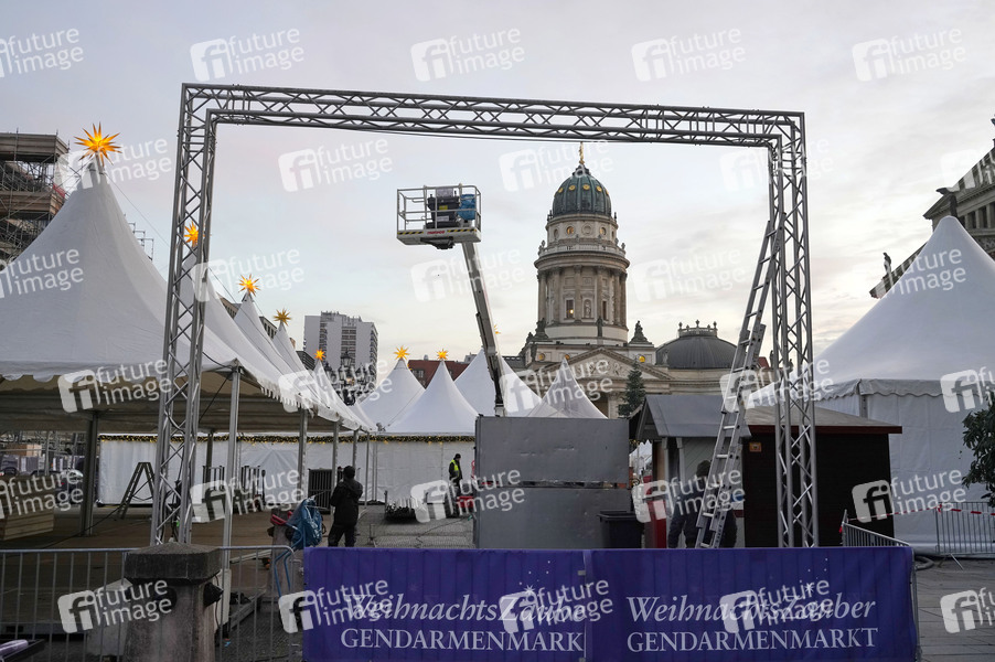 Aufbau vom Weihnachtsmarkt 'WeihnachtsZauber Gendarmenmarkt'. Berlin, 13.11.2021