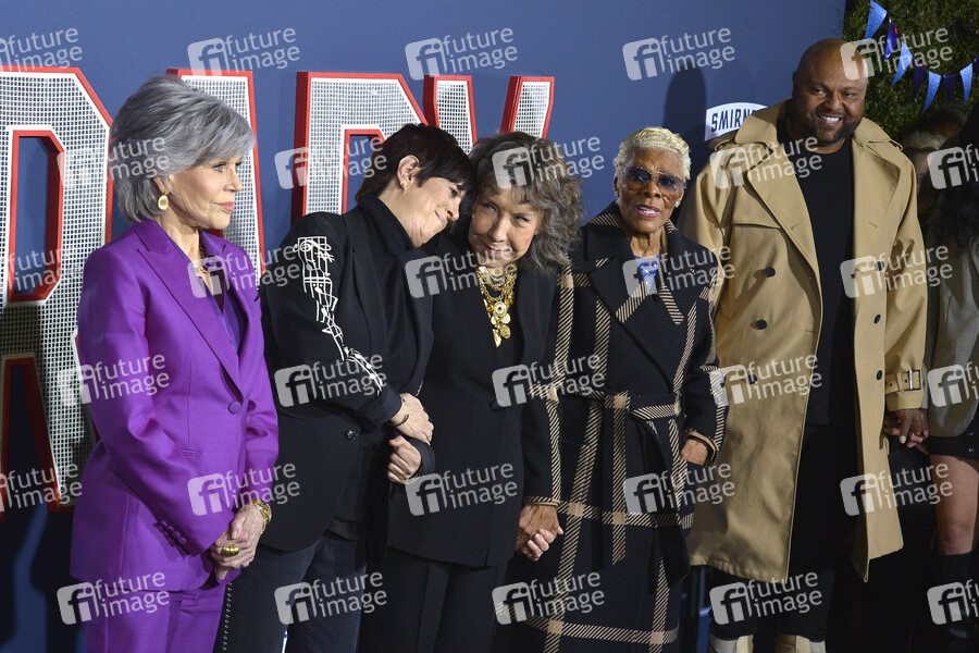 Jane Fonda, Lily Tomlin, Diane Warren, Dionne Warwick und Gast bei der Premiere des Kinofilms '80 for Brady' im Regency Village Theatre. Los Angeles, 31.01.2023