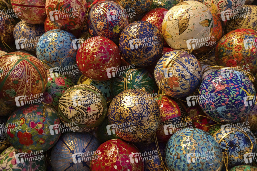 Weihnachtsbaumkugeln auf dem Weihnachtsmarkt WeihnachtsZauber Gendarmenmarkt 2024 auf dem Bebelplatz an der Staatsoper. Berlin, 27.11.2024