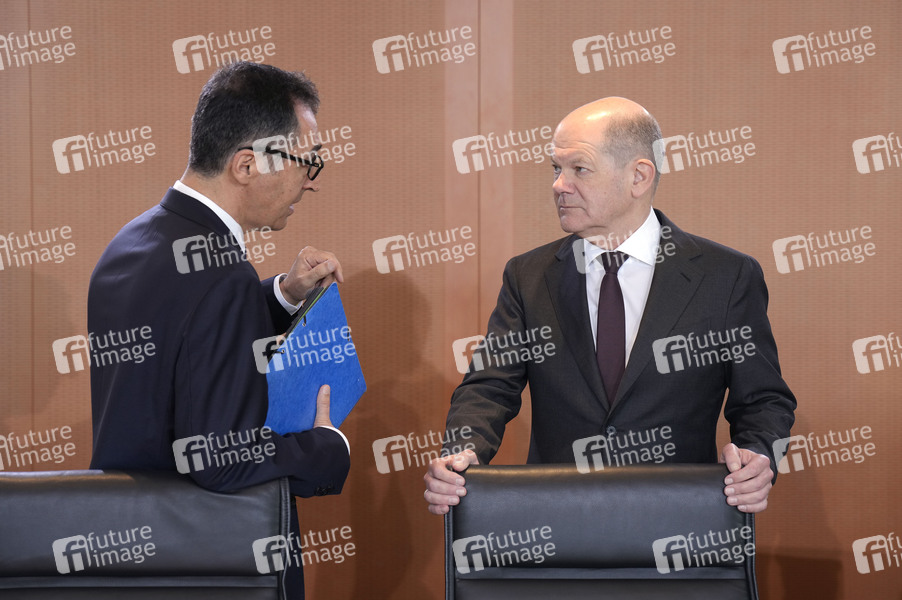 Cem Özdemir und Olaf Scholz in der 96. Sitzung des Bundeskabinetts im Bundeskanzleramt. Berlin, 10.04.2024