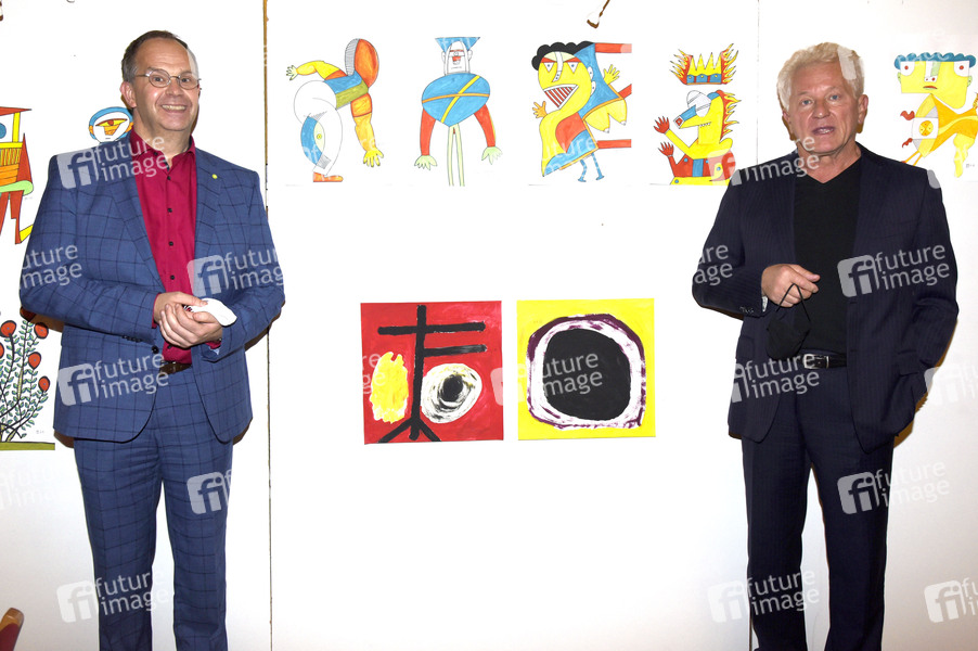 Miroslav Nemec mit Matthias Riedel-Rüppel vor seiner Lesung aus seinem zweiten Roman 'Kroatisches Roulette' zugunsten der Tagesstätte SeelenART im Kleinen Theater. Haar, 22.10.2020