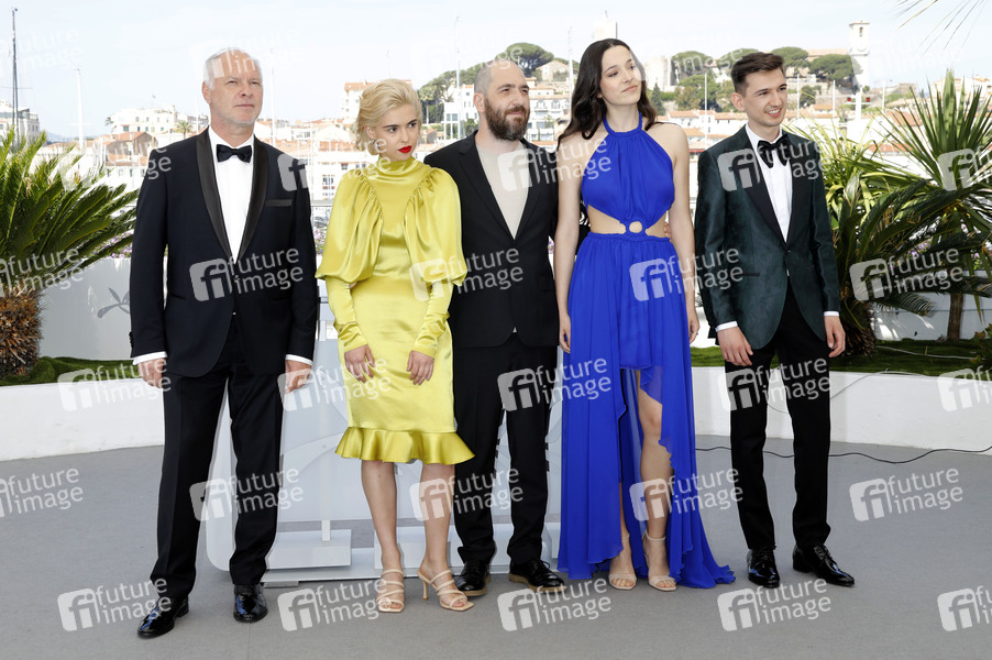 Vlad Ivanov, Mara Bugarin, Alexandru Belc, Mara Vicol und Serban Lazarovici beim Photocall zum Kinofilm 'Metronom' auf dem Festival de Cannes 2022 / 75. Internationale Filmfestspiele von Cannes am Palais des Festivals. Cannes, 24.05.2022