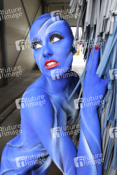 Werbefotos mit Model Caro für die Firma Autotechnik Heinz Müller in Elsdorf im Auftrag der Zoom Werbeagentur Bergheim. Bodypaint Künstler: Jörg Düsterwald