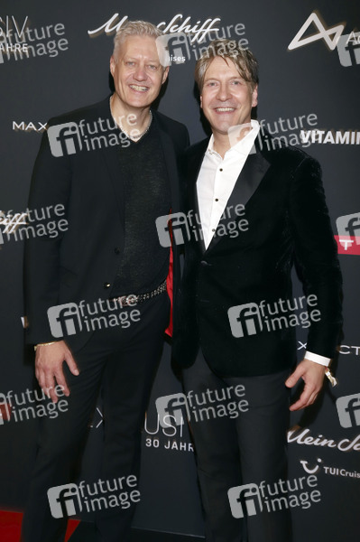 Lars-Eric Mann und Frank Vogel beim Jubiläums-Event '30 Jahre RTL Exclusiv' an Bord der Mein Schiff 7 im Hamburger Hafen. Hamburg, 27.09.2024