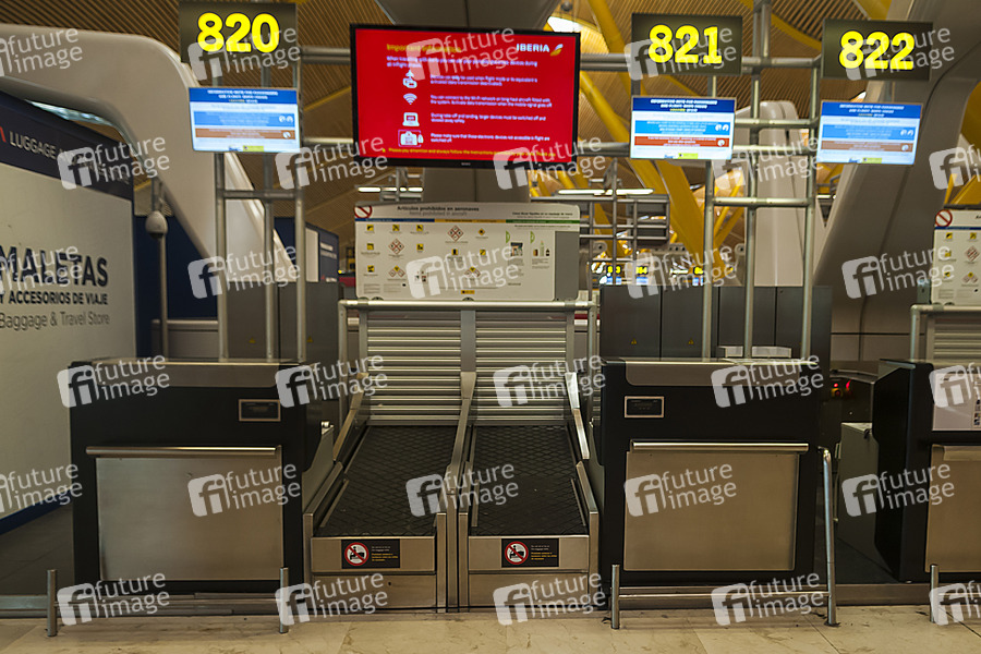 Adolfo Suárez Madrid–Barajas Airport, Terminal, Flugschalter, Coronakrise, Corona-Krise, Schutzmaßnahmen am Flughafen, Einschränkungen im Flugverkehr, Reisefreiheit, Luftfahrt, Airport, Flugausfall, Flugausfälle, Ferienstart, Öffentlichkeit, Eindämmung, Seucheneindämmung, Vorbeugung, Prävention, schützen, Schutz, Verkehrsmittel, Flugreisen, Kontaktverbot, Kontaktverbote, Ansammlungsverbote, Ansammlungsverbot, Ausgangseinschränkung, Ausgangsbeschränkung, Ausgangsbeschränkungen, Kontaktsperre, Bewegungsfreiheit, Seuchenschutz, Mindestabstand, Eindämmung, Seuchenschutz, Corona-Schutz, Reisewarnung, EU-Fluggastrechte-Verordnung, EU-Verordnung, Entschädigung, Flug gestrichen, Ticketpreiserstattung, Erstattung des Tickets, Annulierung, Airline, Abflugszeit, Ankunftszeit, Kurzstrecke, Mittelstrecke, Langstrecke, Schlichtungsstelle, Geld zurück, Rechte, Fluggastrechte, Umbuchen, Umbuchung, Flugstornierung, Ersatzflug, Unannehmlichkeiten, COVID-19, Ausbreitung, weltweiter Ausbruch, Eindämmung, SARS-CoV-2, Corona, Coronavirus, Coronaviren, Corona-Virus, Corona-Viren, Ansteckung, Ansteckungsgefahr, Epidemie, Pandemie, Infizierung, Passagierrückgang, Flugannullierung, Flug annulliert, Flugreise, Flug storniert, Flugstornierung, Flugstornierungen, Reiserücktritt, Reiserücktrittskosten, Reiserücktrittsversicherung, Virus, Flugreise, Flugreisen, Reisesaison, Ferienzeit, Flughafen, Airport, Ferien, Ferienstart, Ferienflieger, Reiseanbieter, Reisewarnung, Fliegen, Airways, Lockdown, Lock-Down, Lock Down, verwaist, Reisesaison, Ferien, Ferienzeit, Ferienflieger, Last Minute, Grounding, aktuelle Passagierinformationen, Reisewarnungen, Airlines, Reisebüro, Reisebüros, Reisebuchung, Urlaub, Flugticket, Urlaubsbuchung, Urlaubszeit, Fernreisen, Mobilität, Inlandsflüge, menschenleer, #stay home, #stayhome, Symbolbild, Symbolfoto