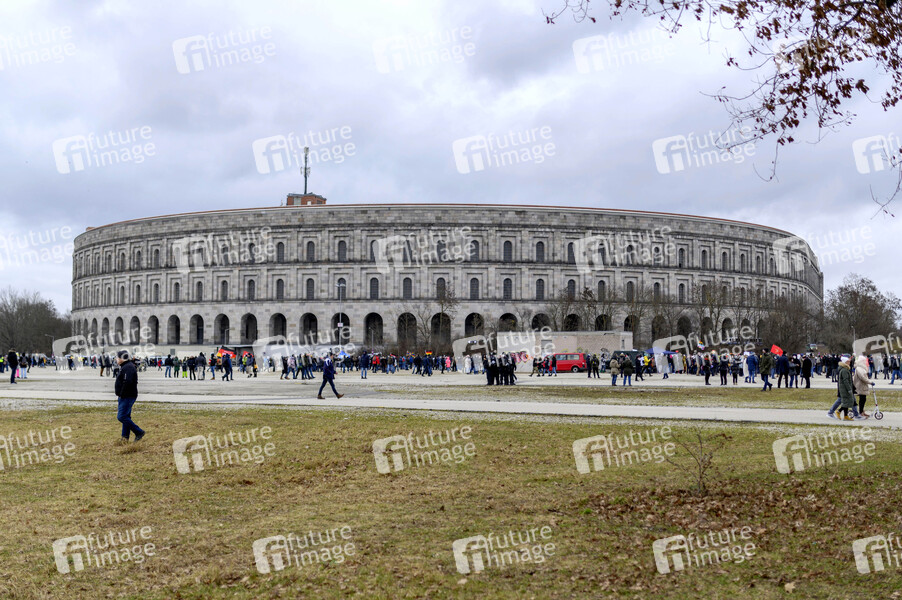 Mega-Demo auf dem Volksfestplatz. Die Stadt Nürnberg hat angeordnet, dass die angemeldete Versammlung der querdenkernahen Gruppierung 'Schüler stehen auf' ortsfest auf dem Volkfestplatz durchzuführen und dabei ein Mund-Nasen-Schutz zu tragen ist. Ein Aufzug wurde untersagt. Statt der erwarteten 30.000 bis 40.000 Menschen waren nur rund 4.000 zum Nürnberger Volksfestplatz gekommen. Nünrberg, 30.01.2022