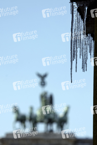 Eiszapfen an einer Dachkante vor dem Brandenburger Tor. Berlin, 05.01.2009