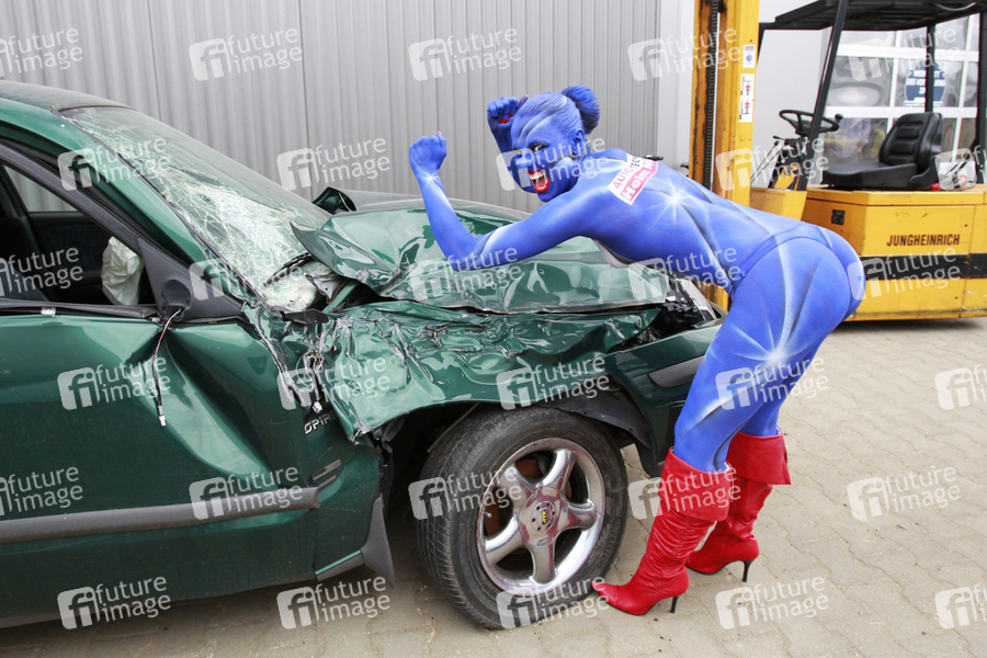 Werbefotos mit Model Caro für die Firma Autotechnik Heinz Müller in Elsdorf im Auftrag der Zoom Werbeagentur Bergheim. Bodypaint Künstler: Jörg Düsterwald