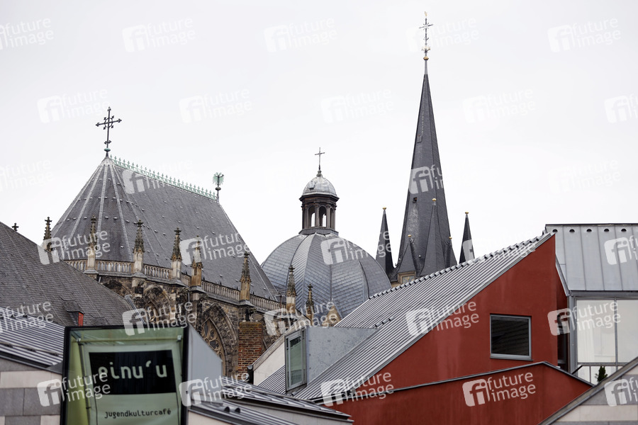Der Aachener Dom überragt Häuser in der Aachener Altstadt. Aachen ist eine kreisfreie Großstadt im nordrhein-westfälischen Regierungsbezirk Köln. Die ehemalige Reichsstadt ist Mitglied des Landschaftsverbandes Rheinland und nach dem Aachen-Gesetz von 2009 Verwaltungssitz der Städteregion Aachen. (Themenbild, Symbolbild) Aachen, 09.07.2021