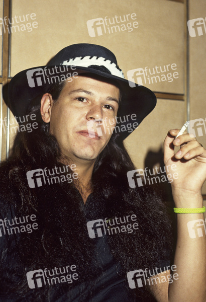Bobby Dall von Poison bei einem Photoshooting in einem Hotel. London, 18.05.1991