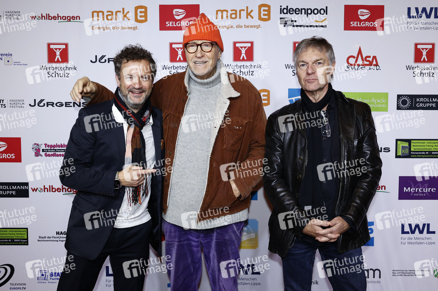 Nicolai Tegeler, Reiner Schöne und Hansjörg Thurn bei der Eröffnung vom 11. Eat My Shorts - Hagener Kurzfilmfestival 2024 in der Stadthalle. Hagen, 16.11.2024