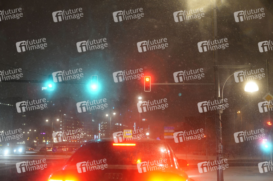 Schnee auf vereister Fahrbahn an der Leipziger Straße. (Symbolbild, Symbolfoto) Berlin, 05.01.2025