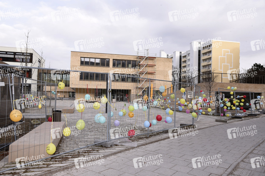 Grundschüler haben im Wechselunterricht Luftballons mit Wünschen 2021 vor allem gegen die Corona-Einschränkungen beim Schulunterricht gestaltet, hier in einer Grundschule in Haar bei München. Haar, 04.03.2021