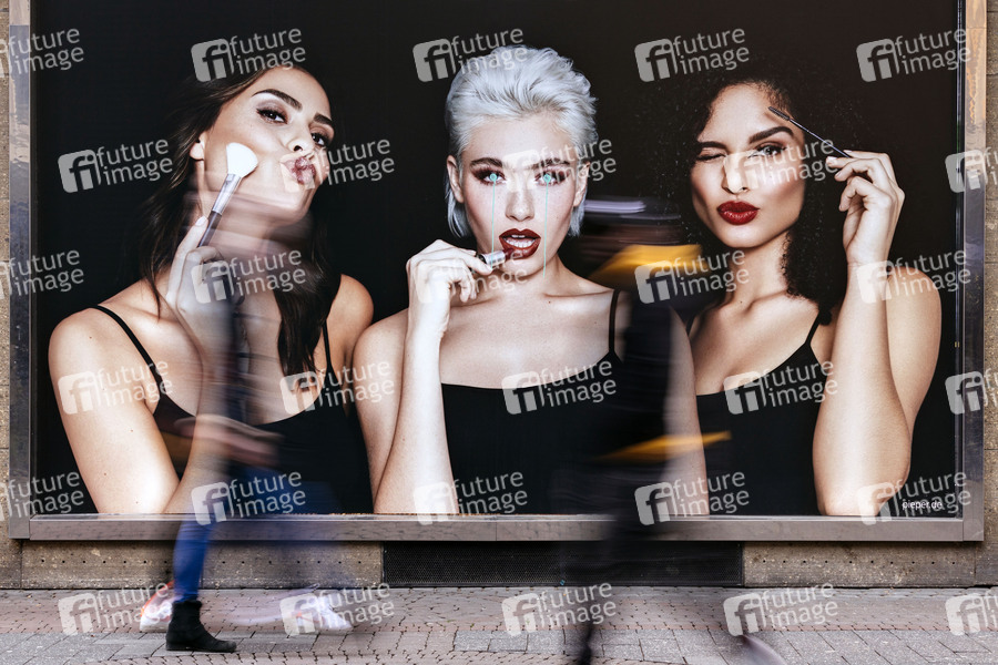 Schminke, schminken, Parfum, Parfüm, Parfumerie, Parfümerie, Makeup, Make-Up, Pflege, Düfte, Visagistin, Kosmetik, Schönheit, Stylen, Styling, Frisur, Beauty, Lidschatten, Lippenstift, Puder, Haarspray, Kosmetikbranche, Außenwerbung, Werbung, Look, Fashiong, Mode, Gesellschaft, Kosmetikindustrie, Cosmetics, Symbolbild, Symbolfoto