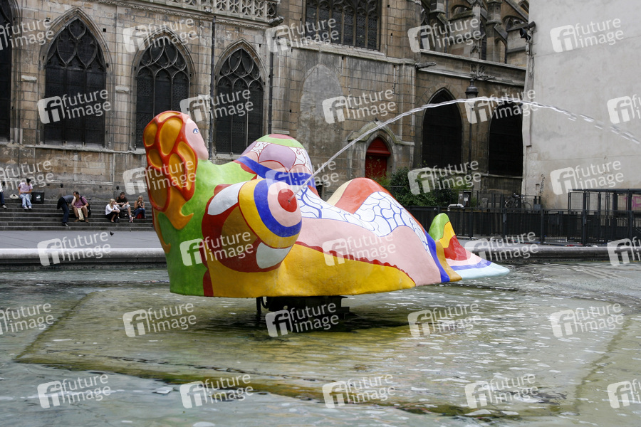 wurde von dem Schweizer Bildhauer Jean Tinguely zusammen mit seiner Lebenspartnerin Niki de Saint Phalle entworfen und 1982/83 ausgeführt, der nach Igor Stravinsky benannte Brunnen setzt sich aus 16 beweglichen und wasserspeienden Einzelplastiken zusammen, Gestaltung bezieht sich auf die wichtigsten Kompositionen des russischen Musikers, Wasserbecken 1650 cm × 35 cm × 3600 cm, Tinguely entwickelte schwarze Maschinenplastiken aus Eisen, Saint Phalle gestaltete bunte Fabelwesen und Nanas
