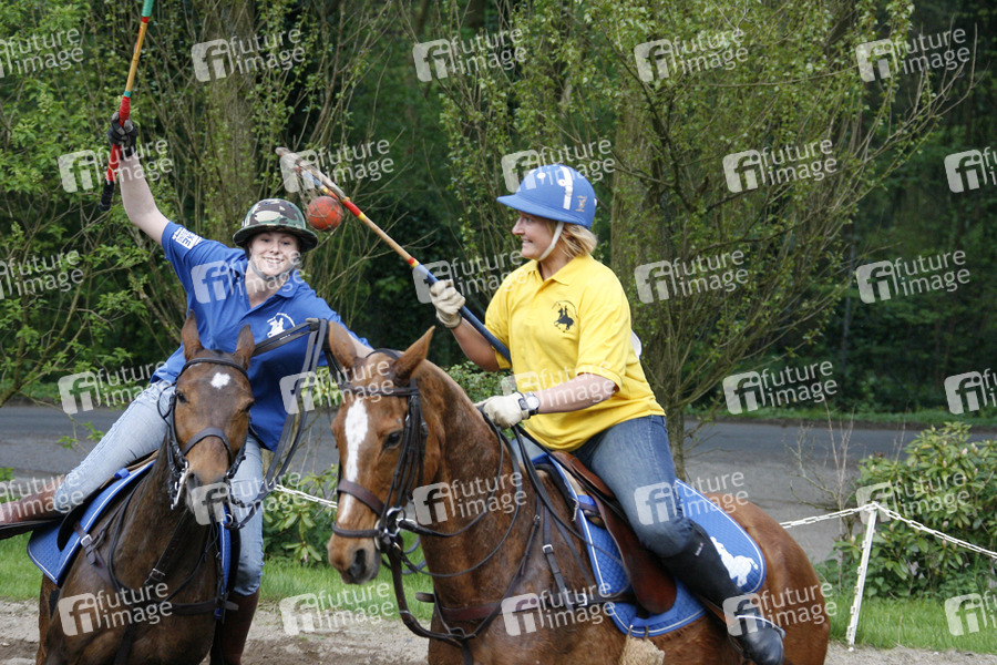 Sportlerinnen, Reiterinnen, Tiere, Pferde, Polocrosse ist eine Kombination von Polo und Lacrosse