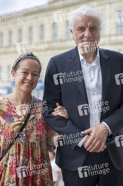 Udo Wachtveitl mit Partnerin Lila Schulz bei der Ankunft zum Event 'Oper für alle 2025' im Rahmen der Münchner Opernfestspiele im Nationaltheater mit der Live-Opernübertragung von Wolfgang Amadeus Mozarts 'Don Giovanno' auf dem Max-Joseph-Platz. München, 06.07.2025