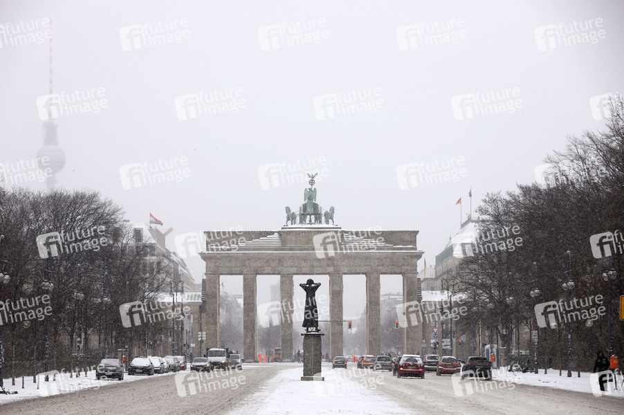 Schnee auf der Straße des 17. Juni am Brandenburger Tor. Berlin, 08.02.20