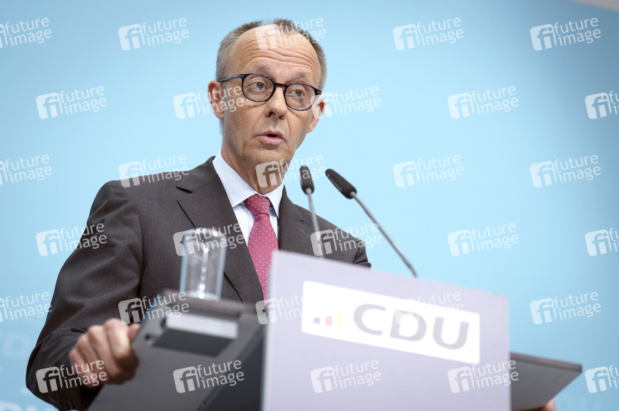 Friedrich Merz bei der Pressekonferenz zu den Ergebnissen der Gremiensitzungen der CDU im Konrad-Adenauer-Haus. Berlin, 09.03.2026