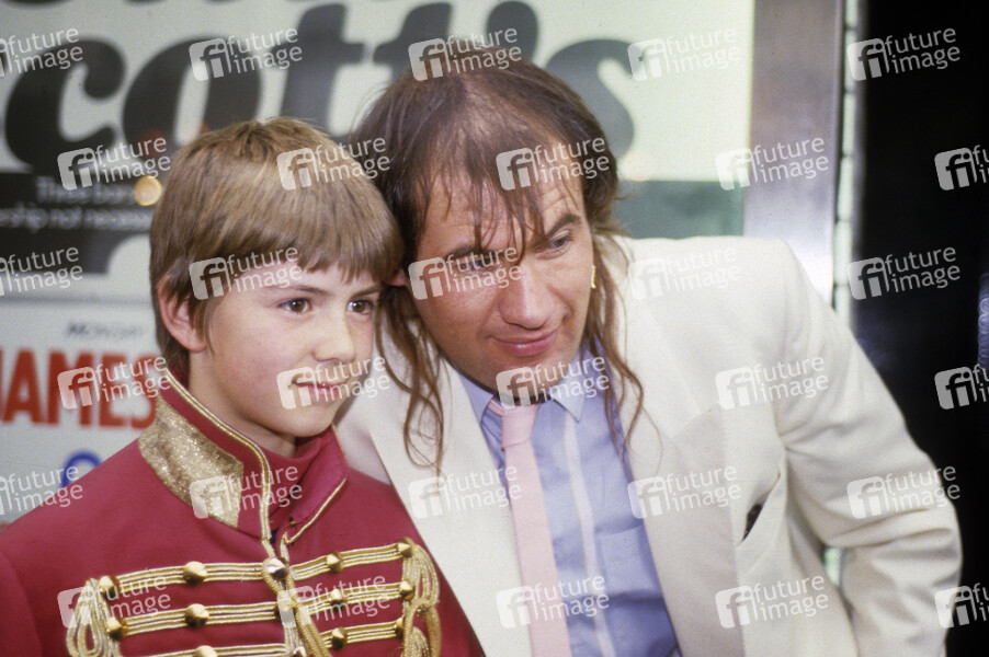 Fish mit LP-Cover-Model Robert Mead beim Photocall zum Release des Marillion Albums 'Misplaced Childhood' im Ronnie Scotts. London, 15.06.1985