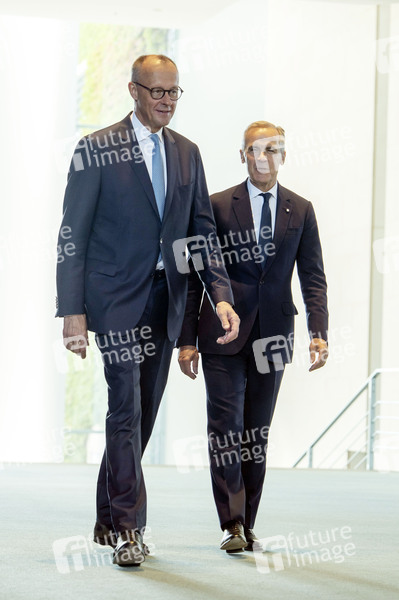 Friedrich Merz und Mark Carney beim Empfang des Premierministers von Kanada mit militärischen Ehren zu einem gemeinsamen Gespräch mit anschließendem Pressestatement im Bundeskanzleramt. Berlin, 26.08.2025