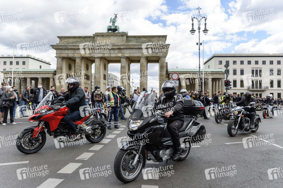 Motorradfahrer protestieren mit einer Sternfahrt zum Brandenburger Tor gegen geplante Fahrverbote an Sonn- und Feiertagen, sowie für den Erhalt des Bestandsschutzes für ältere Motorräder. Berlin, 11.07.2020
